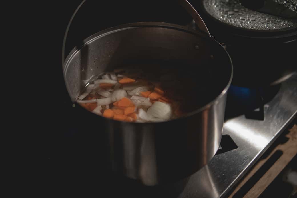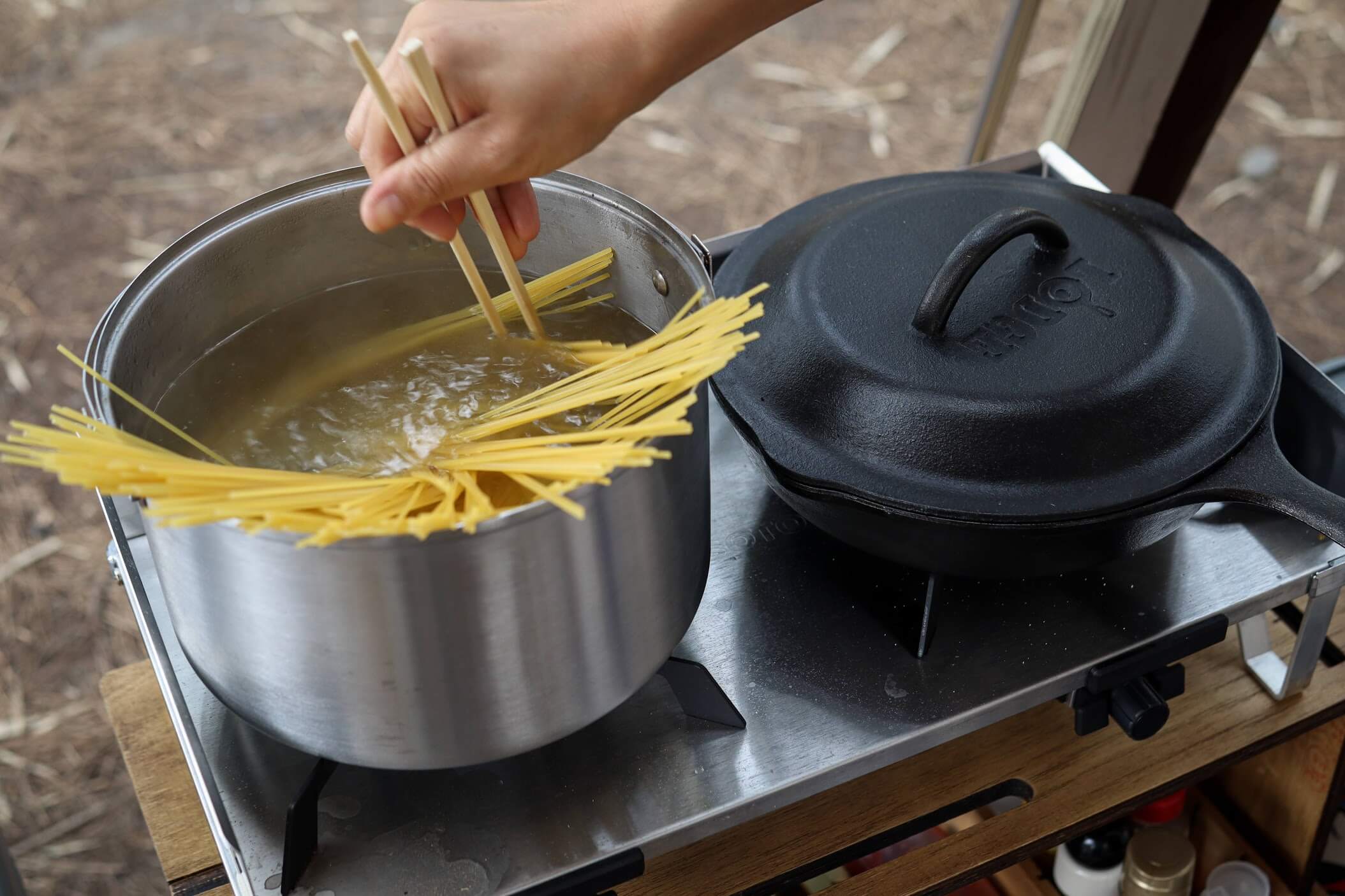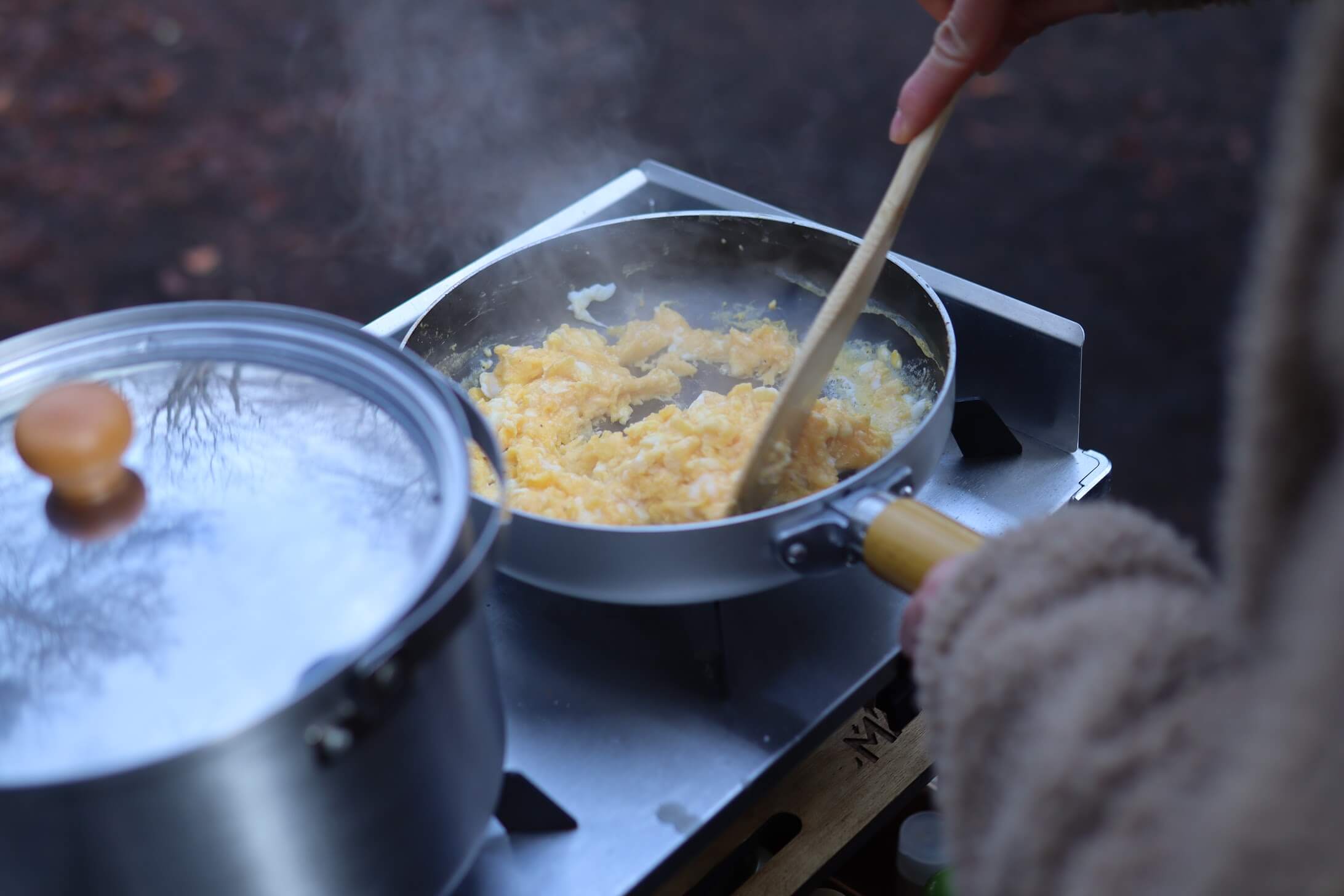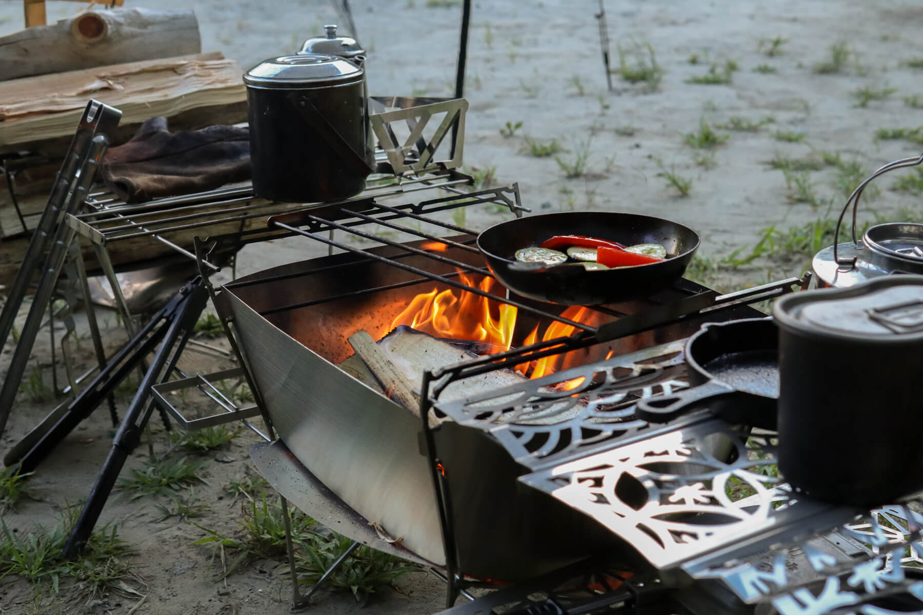 不足する「焼き」「炒め」については別途、焚き火台の上で鉄製のスキレットを使用したりしています。