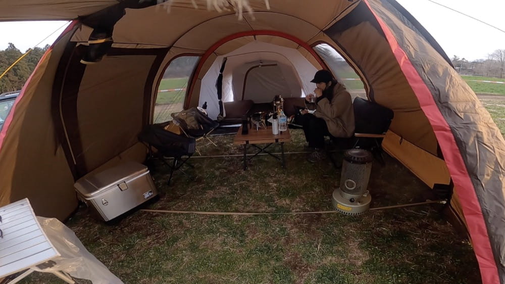 いかに快適に過ごせるか?を大切にしてて、ソロでも大きなテントを使っています。