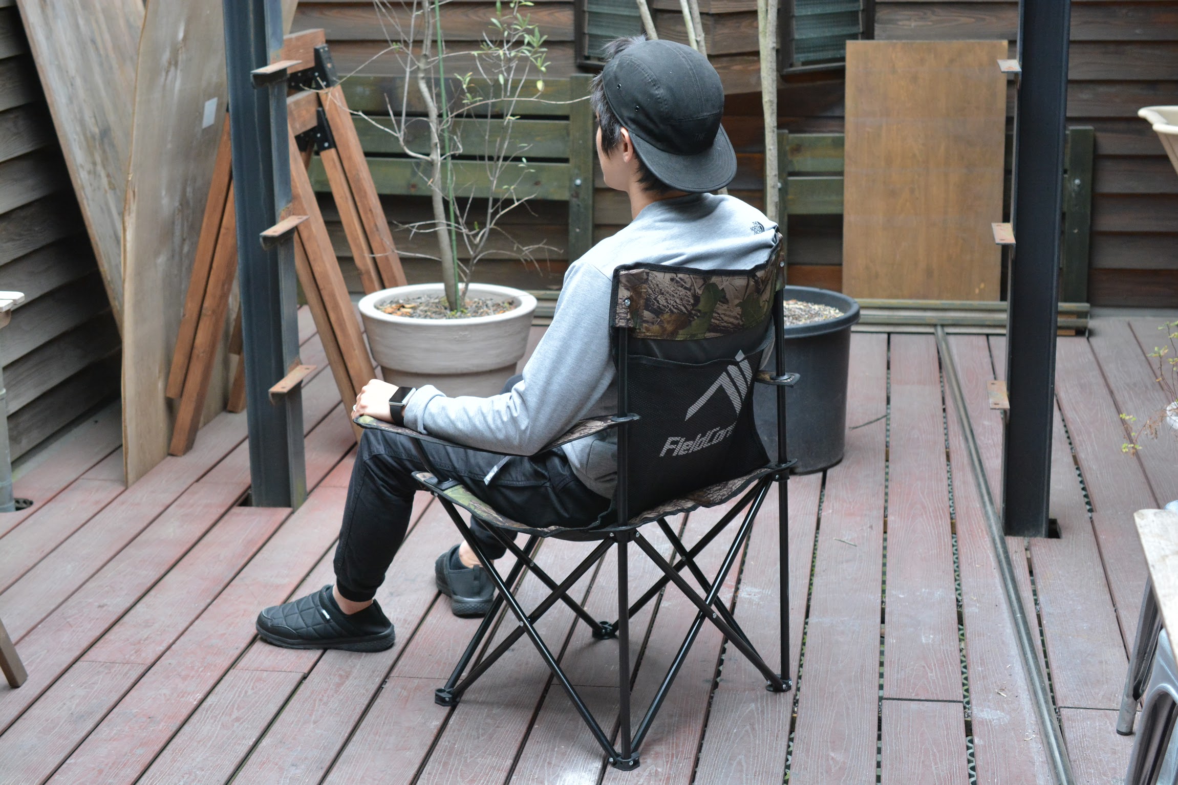 背もたれの角度が直角気味で、チルアウトするにはやや姿勢が良すぎる感もありますが、全く問題なく使えます。