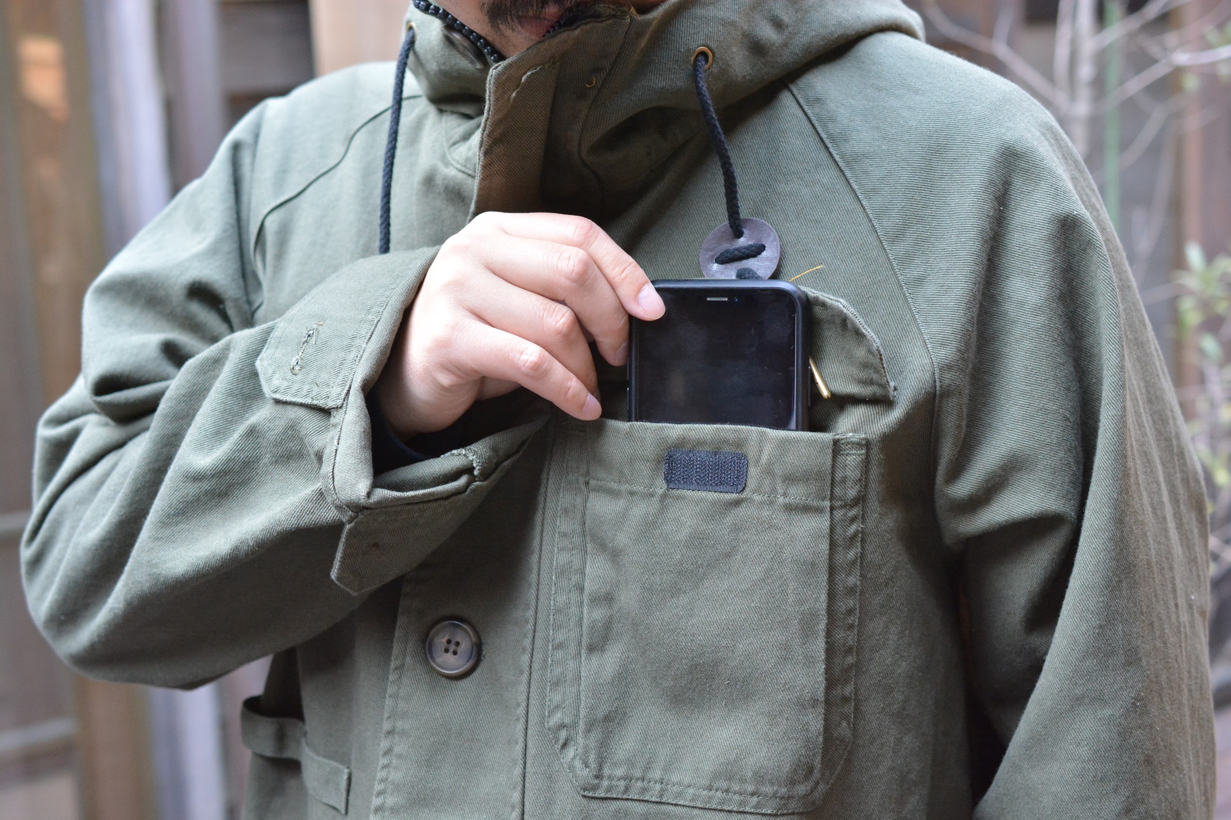 胸ポケットは現代的なスマホサイズ。マジックテープ付き。