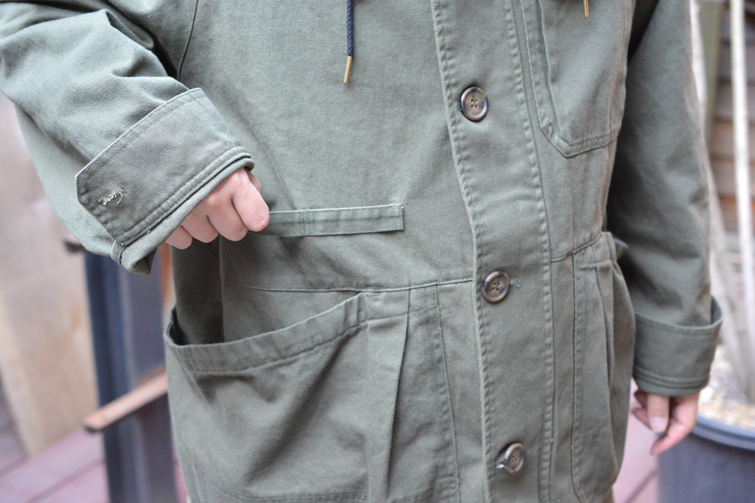 右前身頃のポケット上部にカラビナループつきで、こちらにもツールなどをぶら下げることができます。