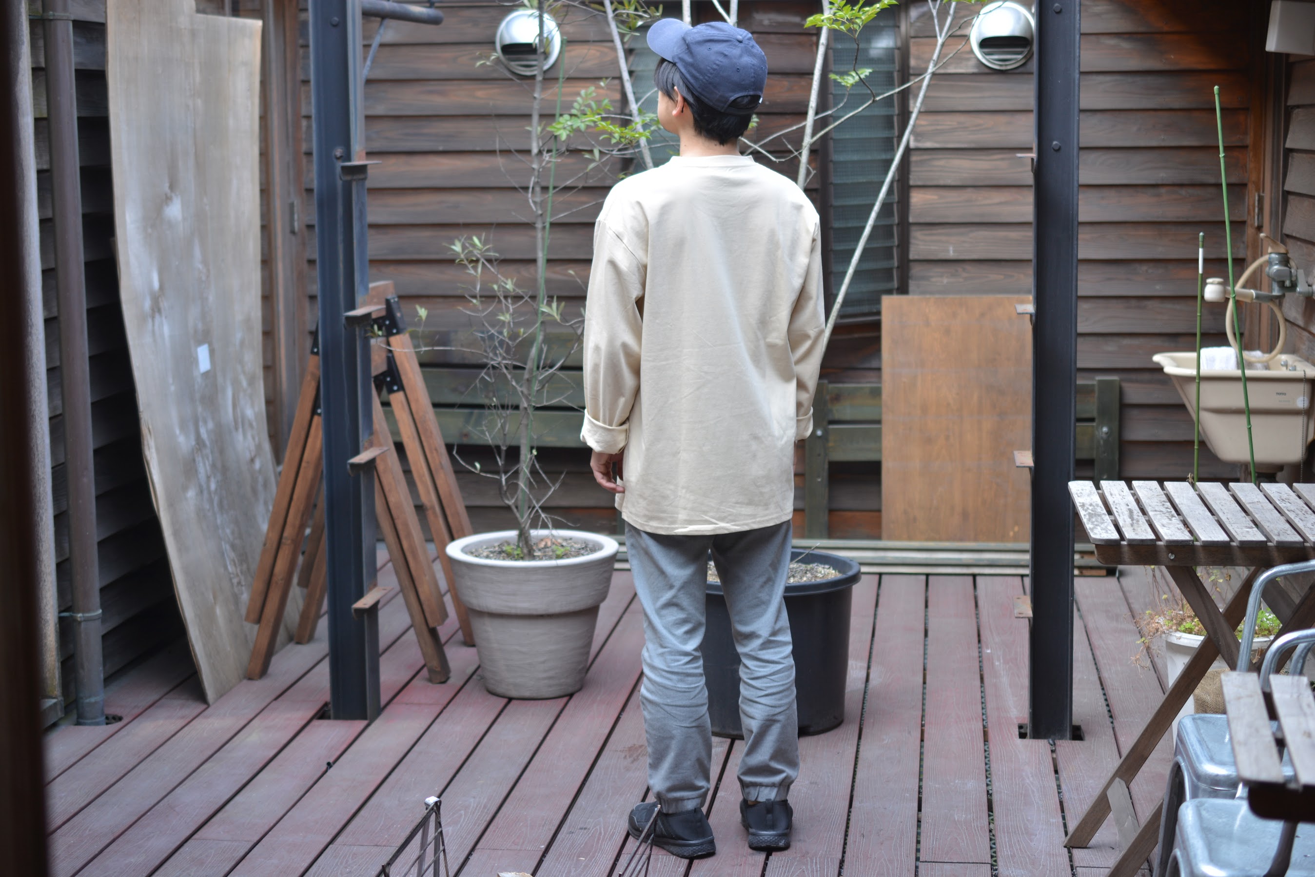GUなどでも似たようなビッグシルエットのロンTはあるかもしれませんが、「実はワークマン」という意外性が楽しいですよね。