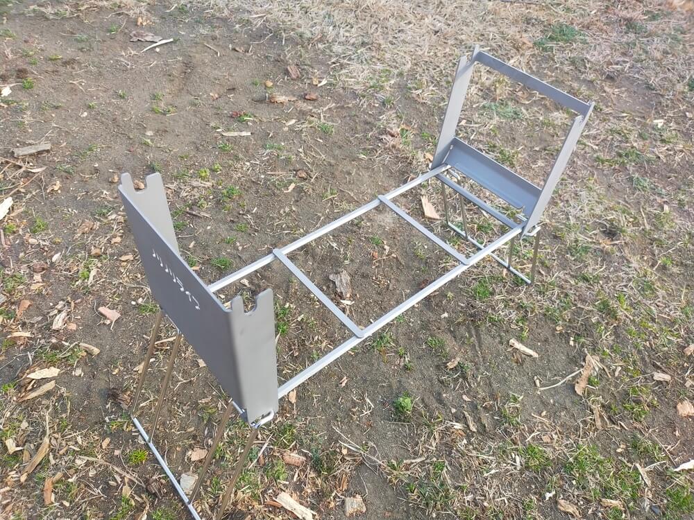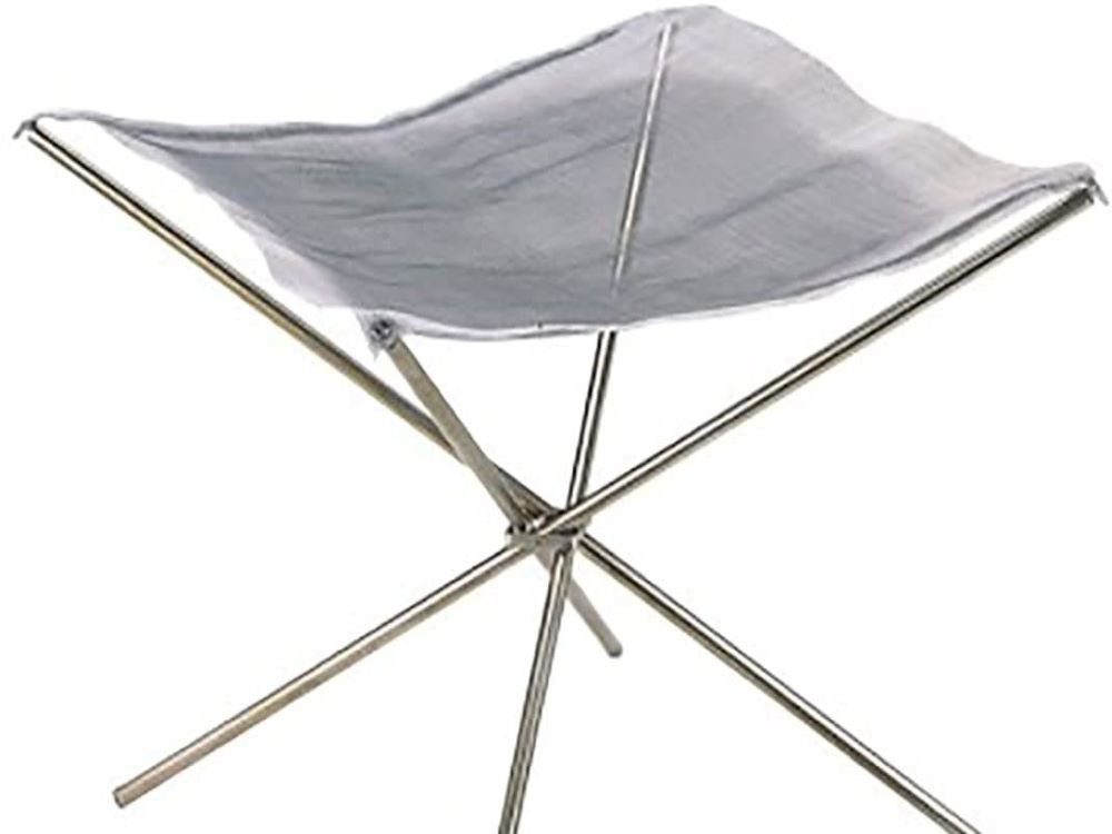 このようなタイプのメッシュ式焚き火台の多くが、ロストル(炭床)部分がメッシュ素材になっており、コンパクトな脚のフレーム部分に乗せて使用するものです。