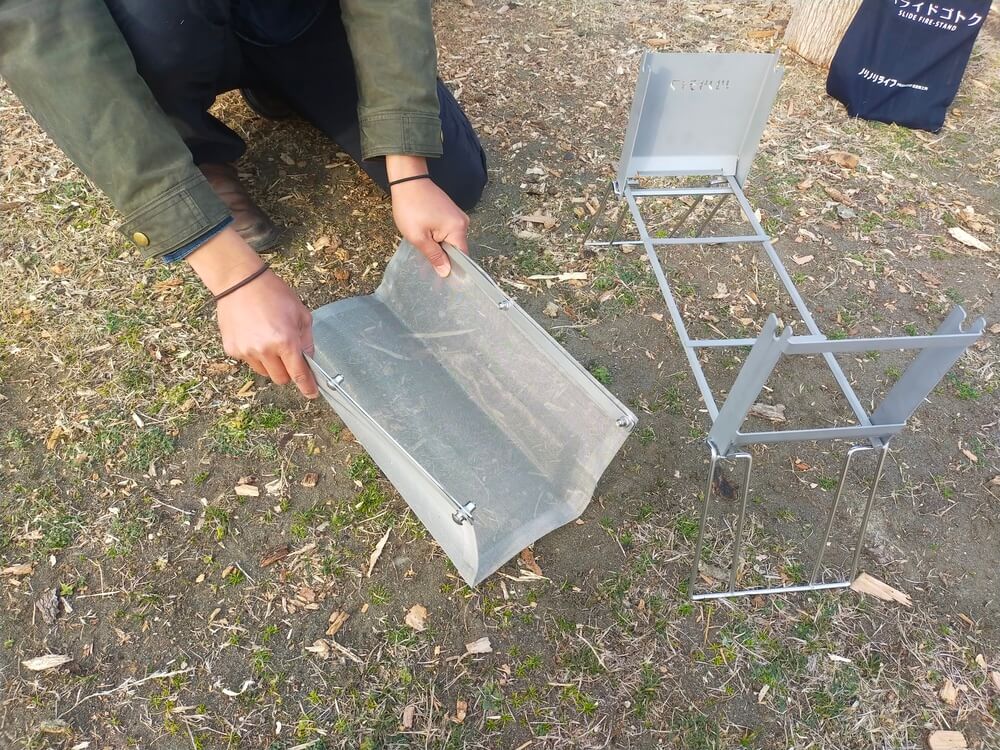 折り畳み式の足を開いて、地面に置けば直火でも使用が可能です。