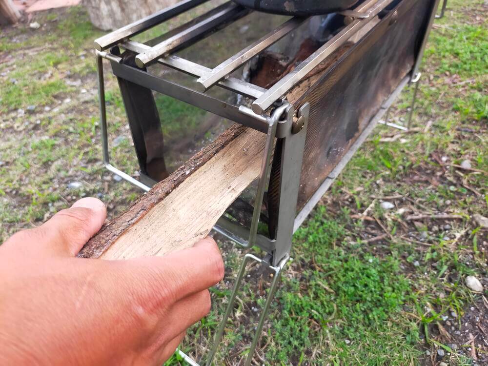 ロストル(炭床)部分と両サイドがメッシュのため、着火が非常にスムーズにできます。割り箸サイズの枝を数本と、着火剤で、針葉樹の薪に簡単に火を移すことができました。