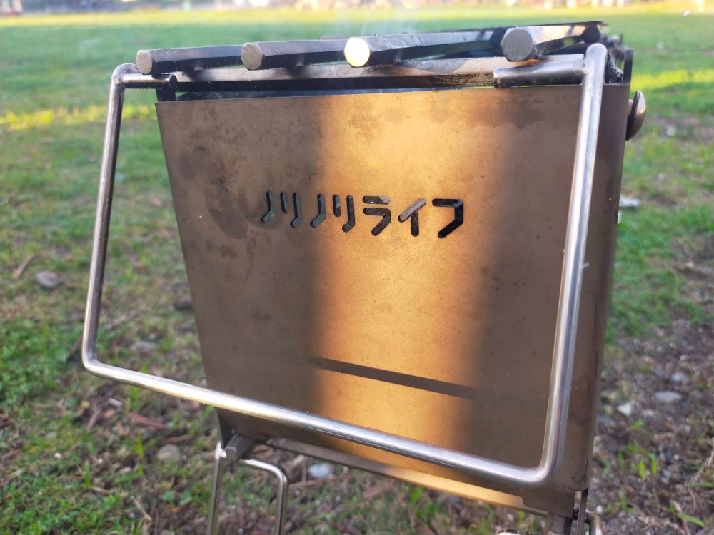 スライドゴトクはヨコナガメッシュタキビダイの上に乗せるだけで五徳として使用できます。